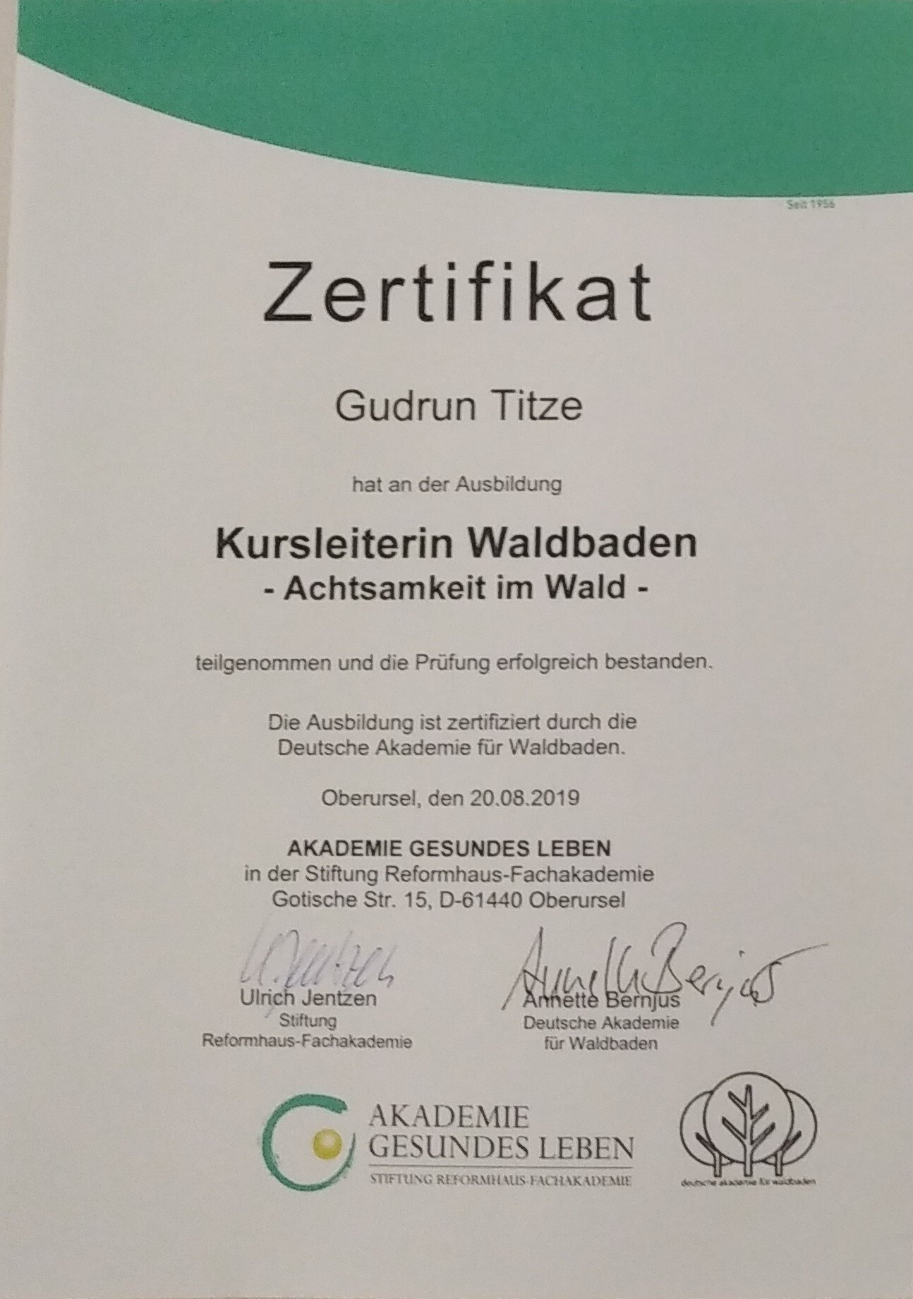 Regelmäßige Weiterbildungen sind eine Selbstverständlichkeit für mich. Zuletzt habe ich die Ausbildung zur Naturcoachin bei André Lorino im Wandelhaus abgeschlossen.